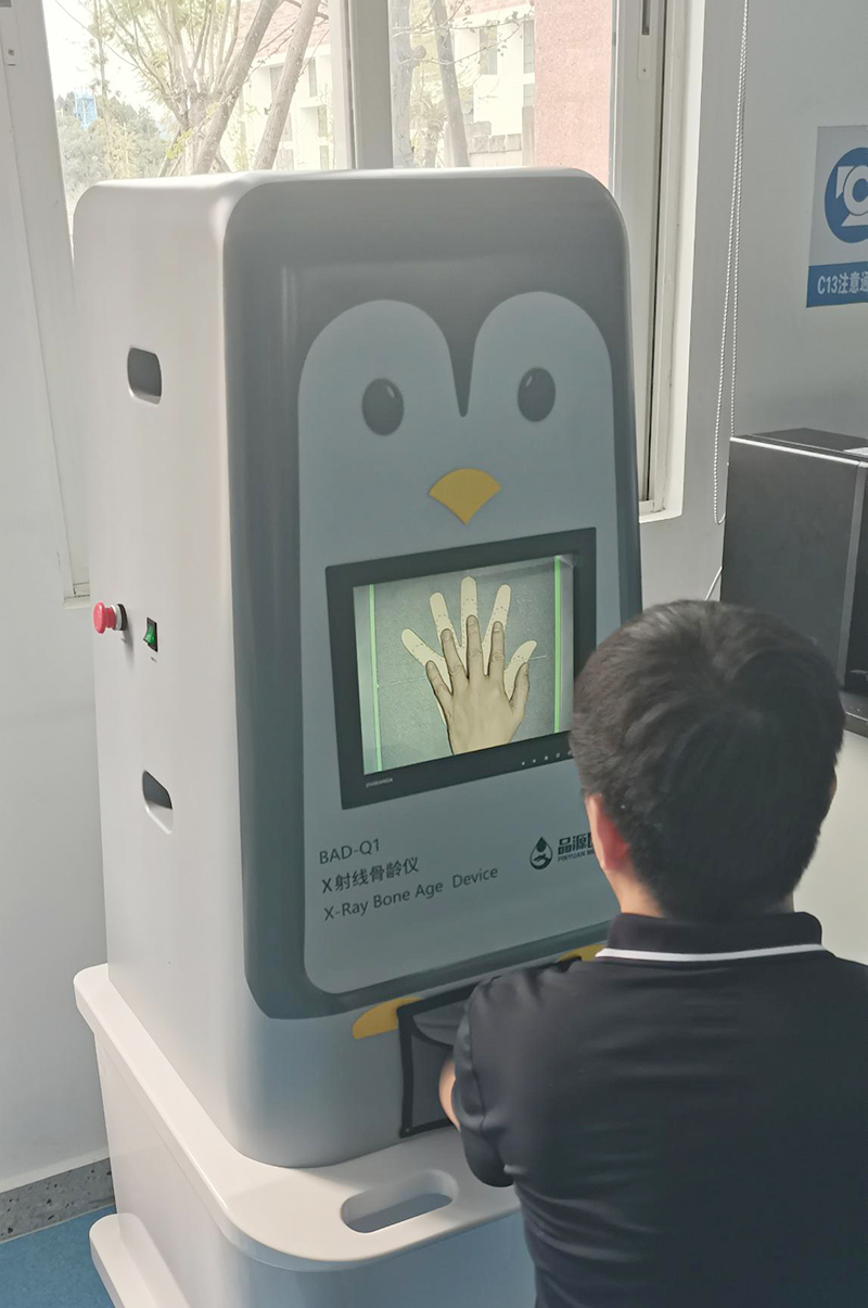 品源醫(yī)療X射線骨齡儀的便捷操作體驗(yàn)也為日常使用帶來便利。配備的手部限位圖、監(jiān)控屏監(jiān)控?cái)[位以及軟件視頻監(jiān)控功能組成的三方位定位系統(tǒng),能幫助操作人員快速、準(zhǔn)確地定位檢測區(qū)域,減少重復(fù)拍攝,提升檢測效率。雙監(jiān)控顯示窗口的設(shè)計(jì),使操作人員與被檢者可同步觀察擺位情況,增強(qiáng)檢測過程的透明度與互動性。此外,BAD-Q1采用企鵝造型的卡通化外觀設(shè)計(jì),色彩柔和,兒科專用參數(shù)設(shè)置避免過度曝光,充分考慮受檢人群心理與生理特點(diǎn),緩解在檢測時(shí)的緊張情緒,保障檢測的安全性與舒適性。