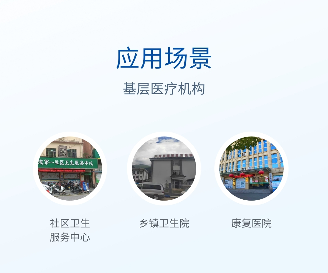 產(chǎn)品用途:本儀器適合社區(qū)服務(wù)中心、鄉(xiāng)鎮(zhèn)衛(wèi)生院、一級民營醫(yī)院等基層醫(yī)療機構(gòu)使用,同時適用于基層專科醫(yī)療機構(gòu)如婦幼保健所、健康小屋、骨科醫(yī)院、老年病醫(yī)院、康復(fù)醫(yī)院、體檢中心等使用。