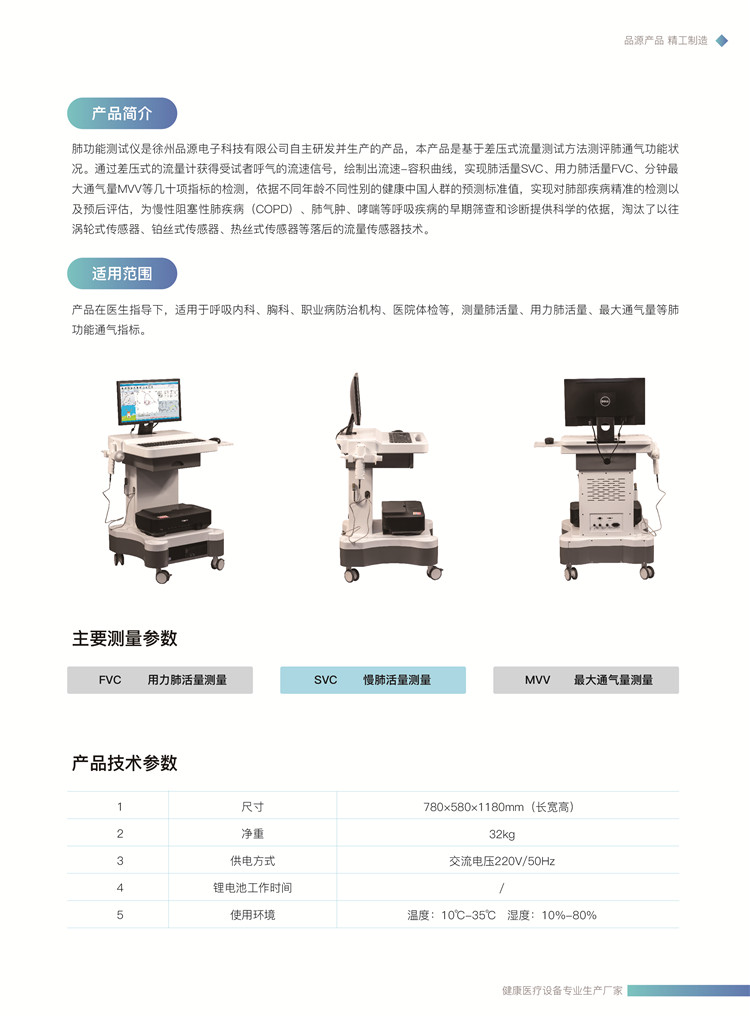 適用范圍:產(chǎn)品在醫(yī)生指導(dǎo)下,適用于呼吸內(nèi)科、胸科、職業(yè)病防治機構(gòu)、醫(yī)院體檢等,測量肺活量、用力肺活量、最大通氣量等肺功能通氣指標(biāo)。