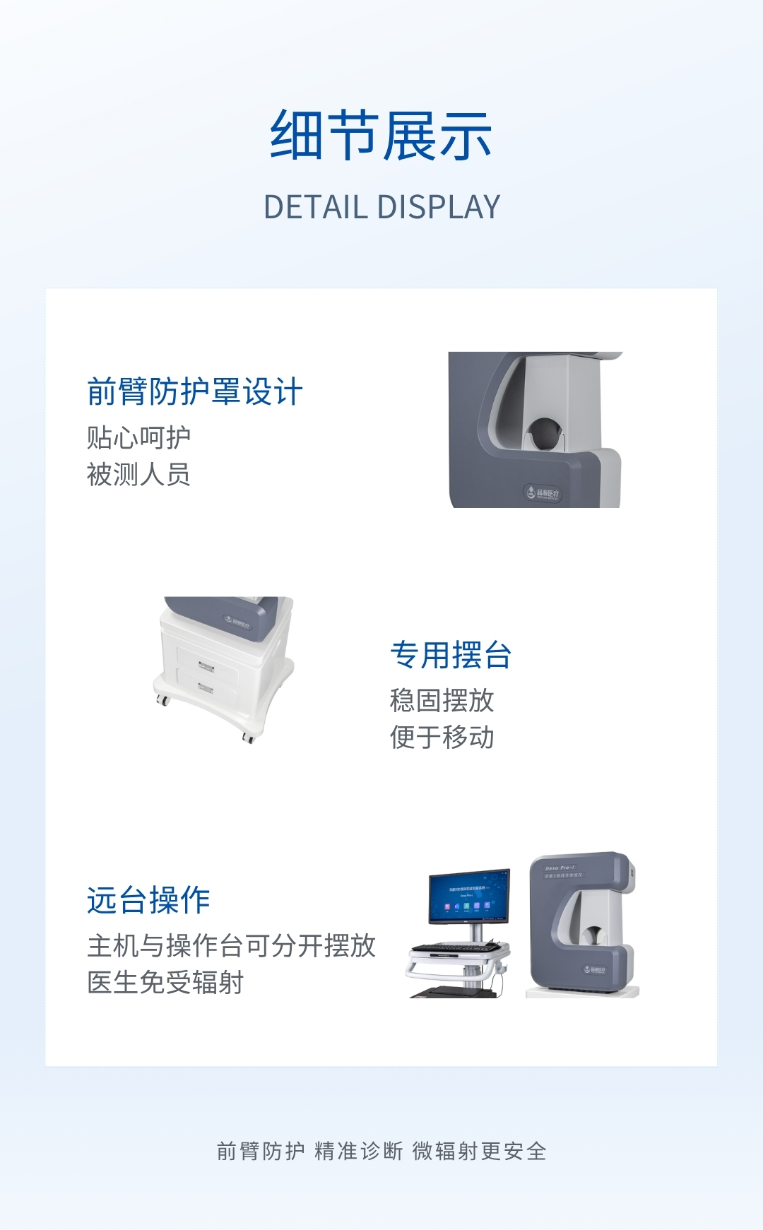 Dexa Pro 系列雙能 X 射線骨密度儀測(cè)量手臂前段,這些部位易顯露,操作簡(jiǎn)捷,無(wú)需消毒。測(cè)量速度快,方便醫(yī)生及病人,可用于大人群檢測(cè)。